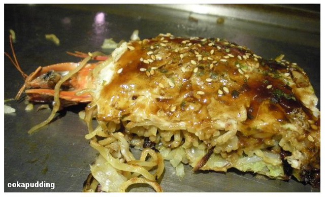 不過我也沒有很愛吃蝦蝦所以無所謂~吃到第二塊的廣島燒時..其實開始有點會膩啦
