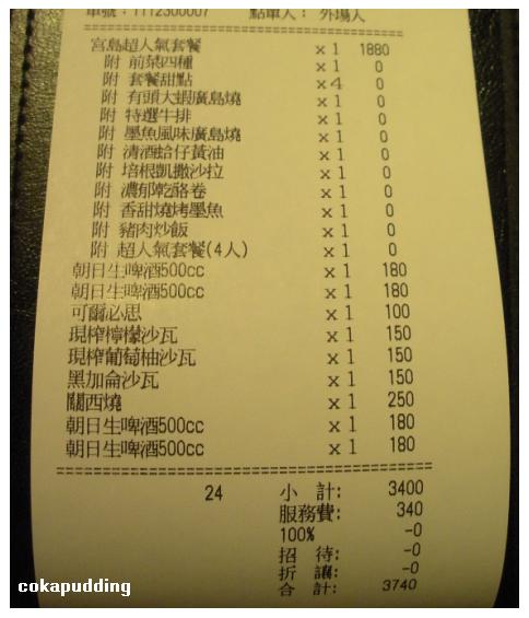 除了飲料都需要單點,今天一共有六隻妖怪所以我們乾脆就點宮島超人氣套餐$1880,另外想吃的再加點就好