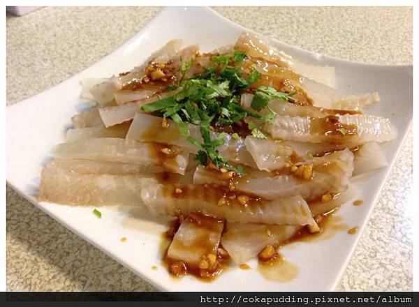 虎皮清凍$200 這玩意兒好特別,好像是豬皮熬煮結凍再切塊的,淋上蒜蓉醬掩蓋了豬騷味