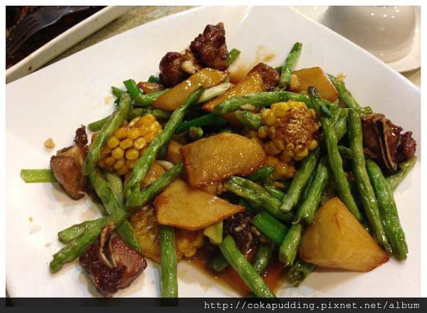 不確定這道是不是叫地三鮮$180 三種菜炒肉,比較少看到玉米這樣切著炒的~