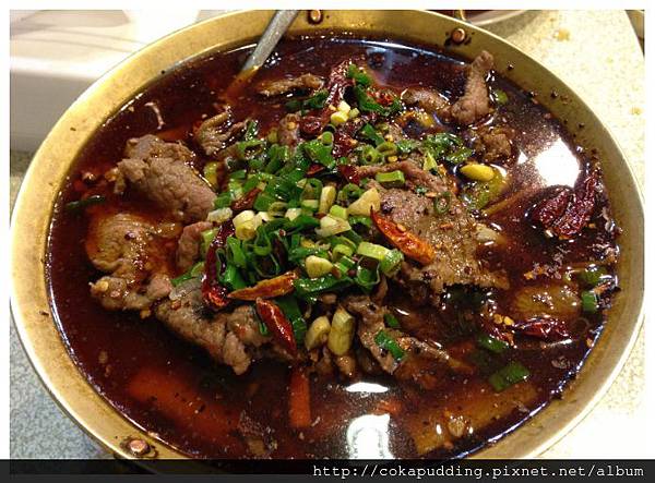 水煮牛肉$280 用的是牛肉片不是牛腩肉所以很好咬~口味很重好吃!就是沒了大家還會撈的那種