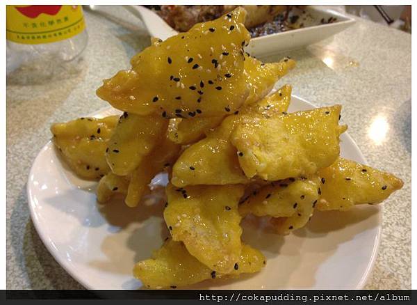 原來黃菜是炸蛋液~~~這吃起來好特別以前沒吃過,蛋蛋淡淡的香味配上外層的脆糖衣