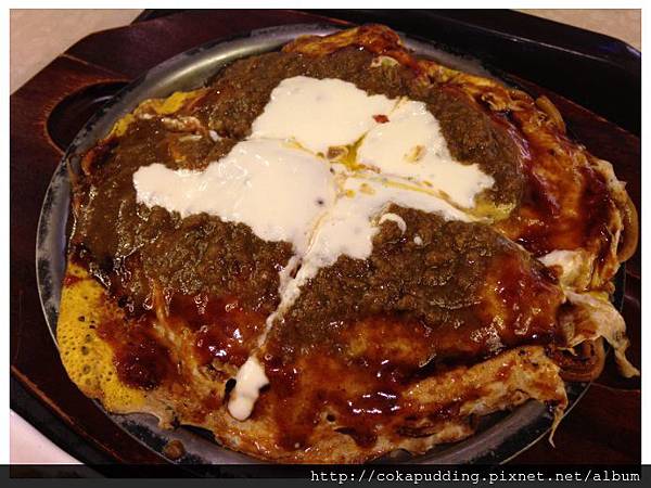 很印度感的咖哩上頭還淋酸奶,不是日式甜甜的咖哩,下面是煎蛋跟炒麵抹正常的大阪燒醬