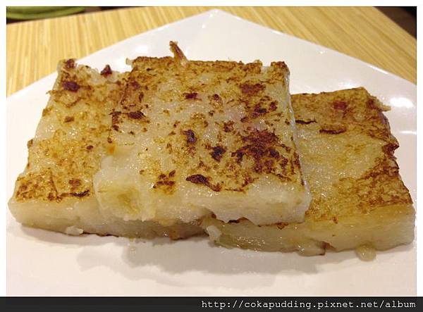 這是有蘿蔔絲的蘿蔔糕,但是入口就化了的口感那種,裡頭有蝦米跟臘肉末,米漿味不明顯