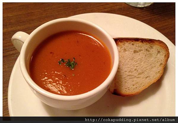 口味是番茄洋蔥底的.蠻新鮮健康的~因為很濃所以配麵包,會飽XD