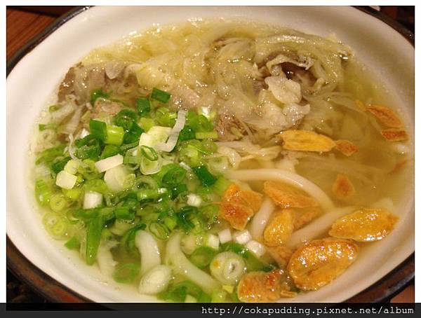 不小隻,但是冷凍蝦的口感,脆脆的~有點點油,不過看在湯很清爽的份上勉強接受這油度