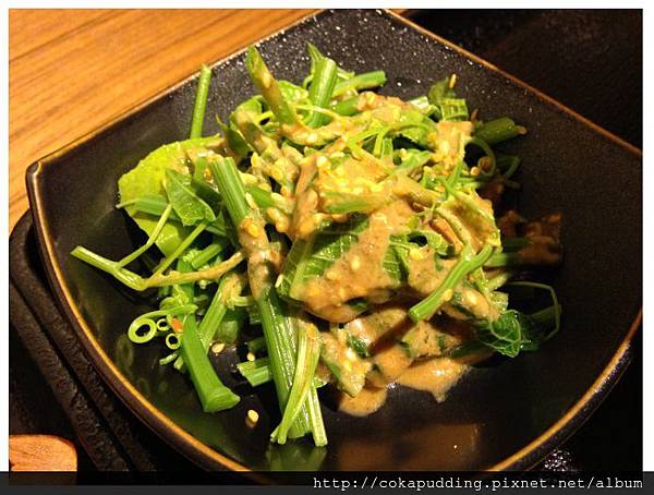 龍鬚菜+芝麻醬,菜梗偏硬又是冷盤,我不喜歡