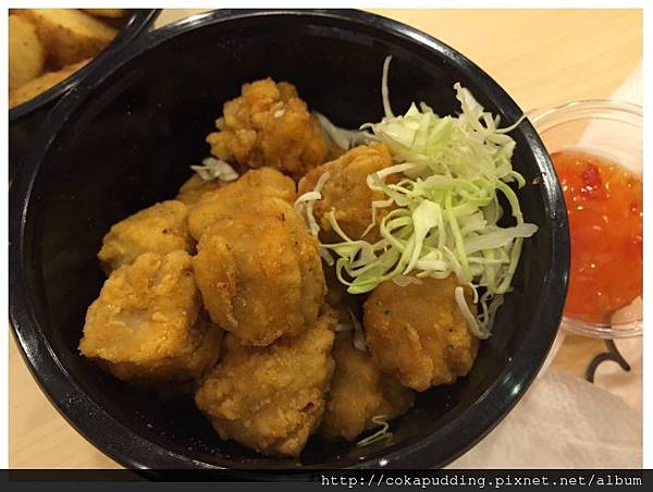 雞球可以沾一旁附的酸甜醬,一點泰式的fu,但不沾也是有鹹味的,有揪喜