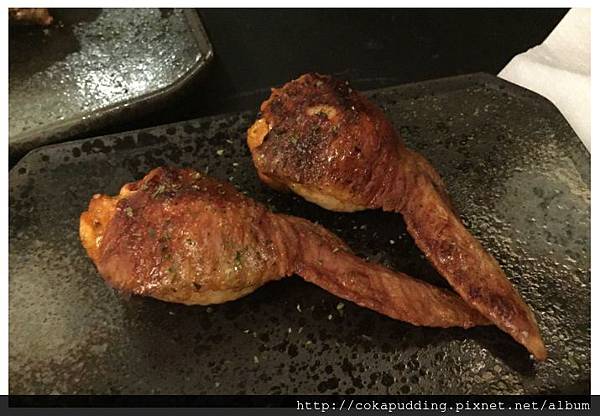 香烤雞翅$100/2串 沒有過多的調味簡單的鹽烤就很好吃,烤雞皮的功力超厲害!(我想到吳留手的雞皮仙貝了!老闆你可以的快開發新菜單)