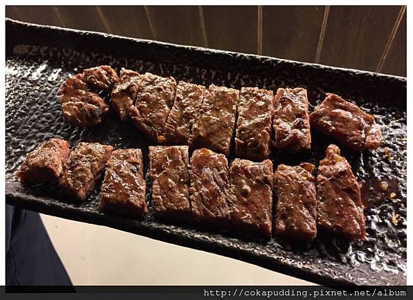 是不是~ 有了燈光加持看起來多美味阿! 這份牛小排份量很多,我覺得它太晚上來了