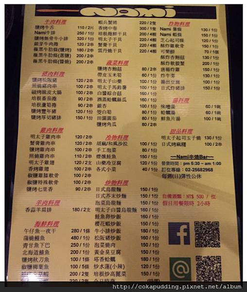 公休時間建議打電話詢問或上FB粉絲團 Nami串燒Bar 啦